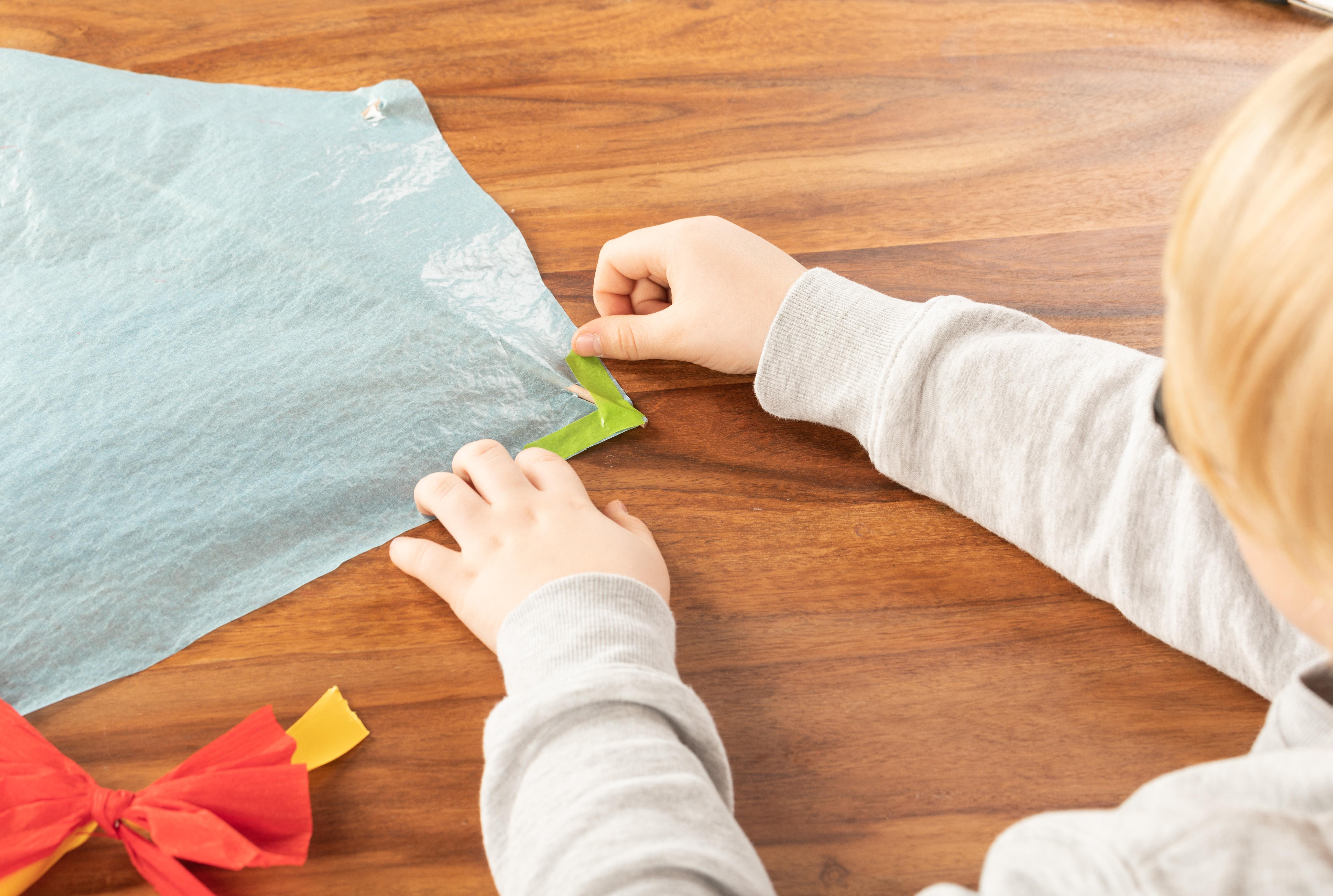 - Drachen-Haut: Nimm leichte Plastikfolie oder spezielles Drachenpapier (ungefähr 70 x 50 cm groß).