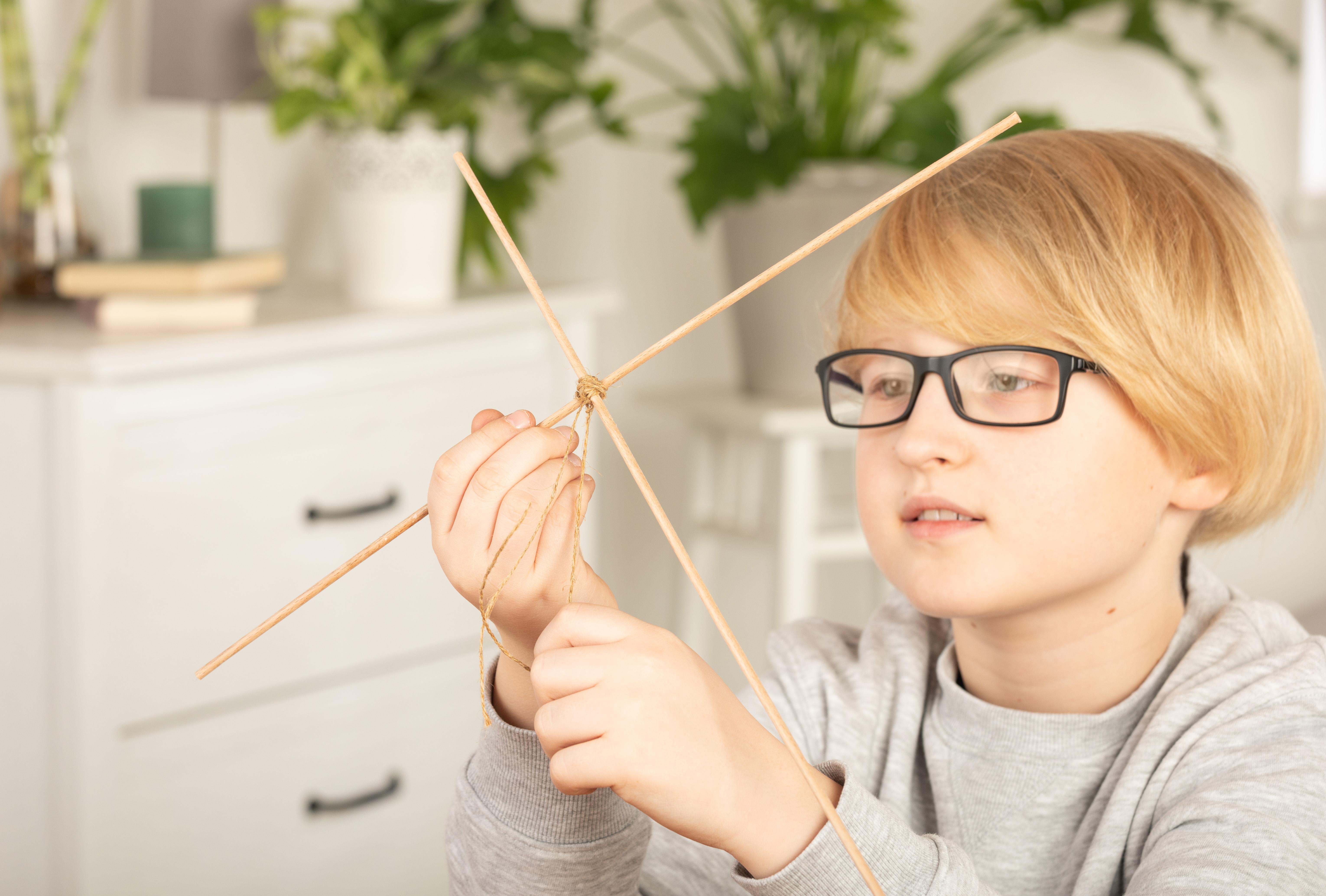 Viele Sachen, die du dafür brauchst, wie Holzstäbe oder Bindfaden, findest du ganz einfach bei uns im Baumarkt – frag einfach deine Eltern!
