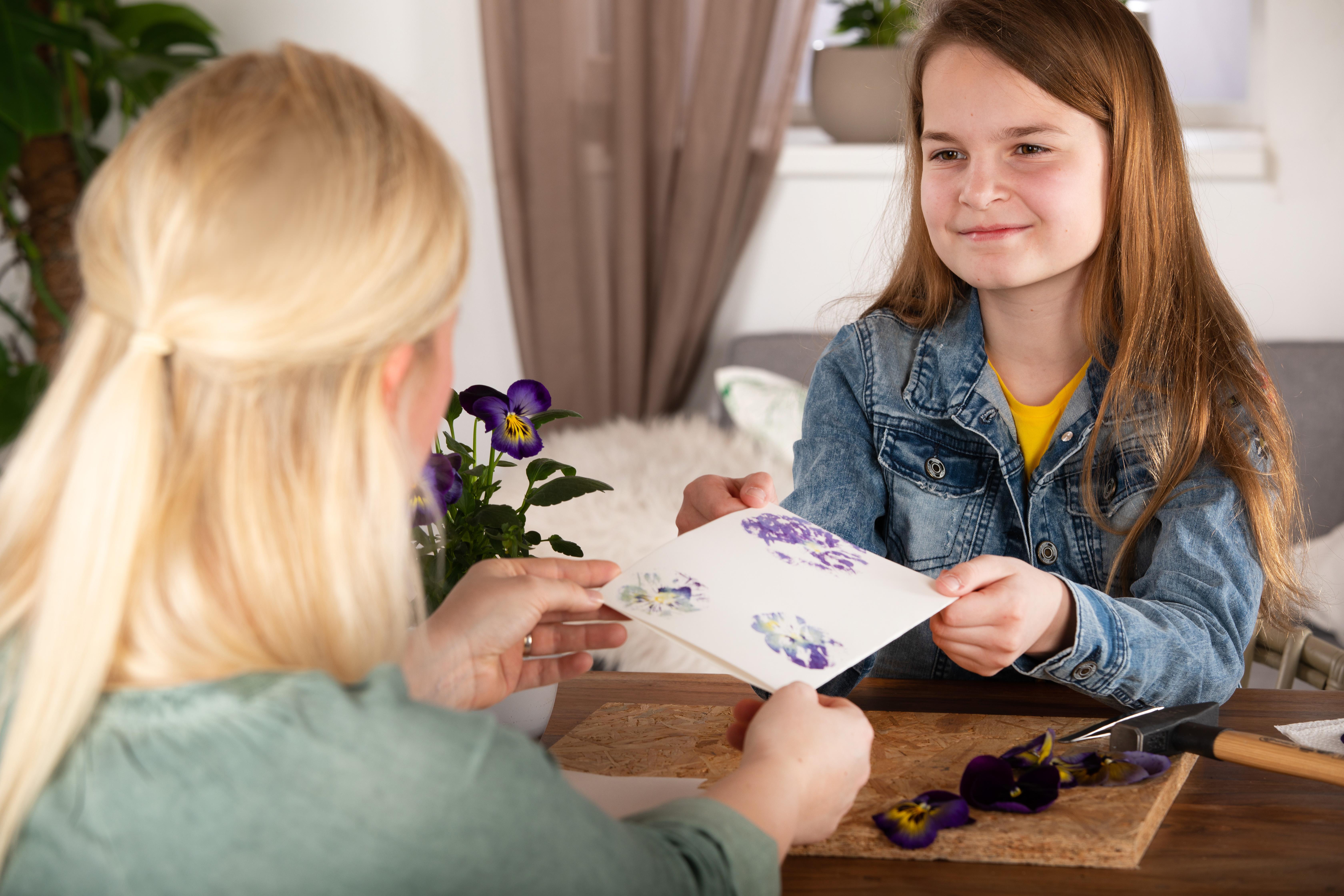 Und für alle, die gern selbst basteln, haben wir etwas ganz Besonderes vorbereitet: Wir zeigen dir, wie du mit einfachen Mitteln und wunderschönen Hornveilchen aus unserem Gartenmarkt eine liebevoll gestaltete Muttertagsgrußkarte basteln kannst. Ideal für Kinder oder als kreative Ergänzung zum Geschenk!