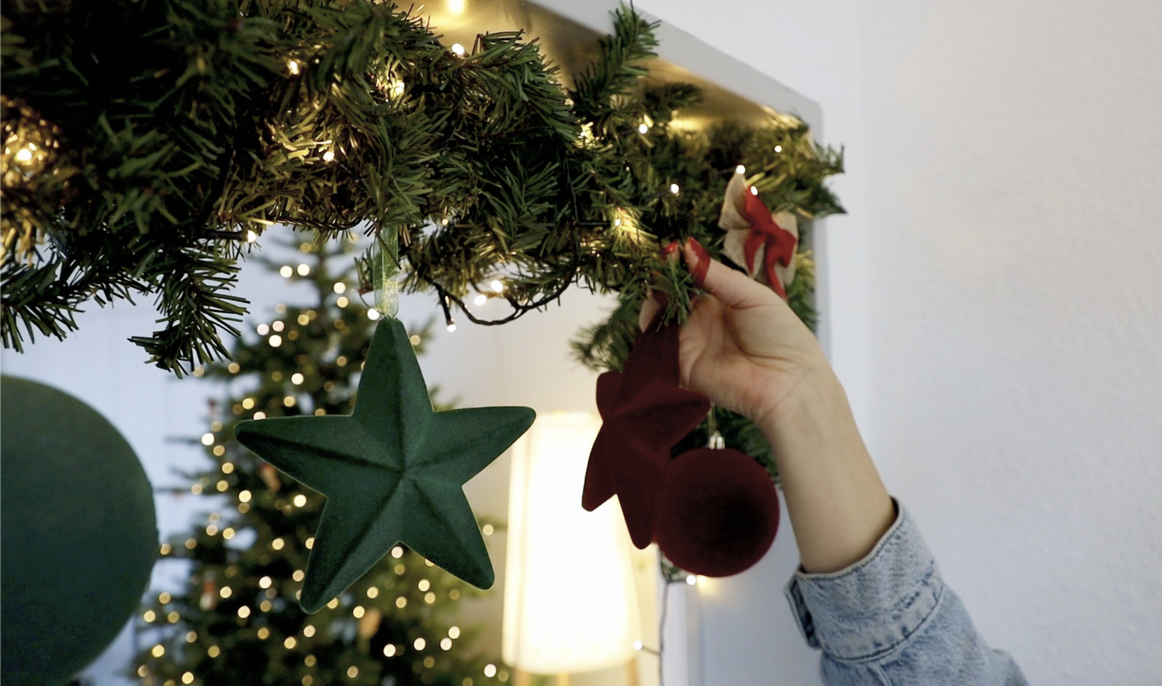 Ihre Girlande der Wahl, z.B. eine filigrane LED-Lichterkette oder eine Makramee-Arbeit. |